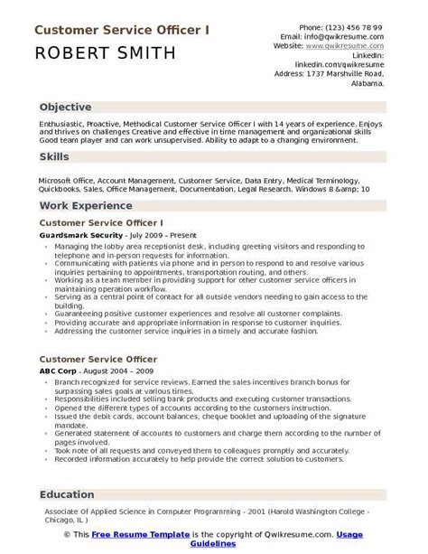 Customer Service Officer Resume Samples | QwikResume