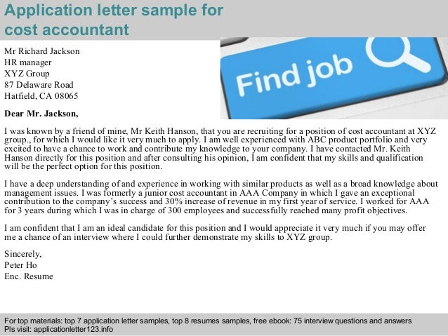 Cost accountant application letter